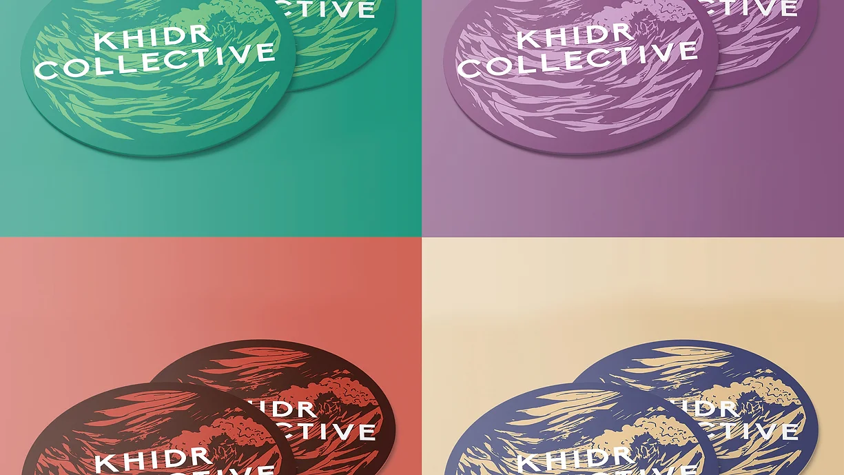 69mm stickers with Khidr Collective logo in four different colour combinations
